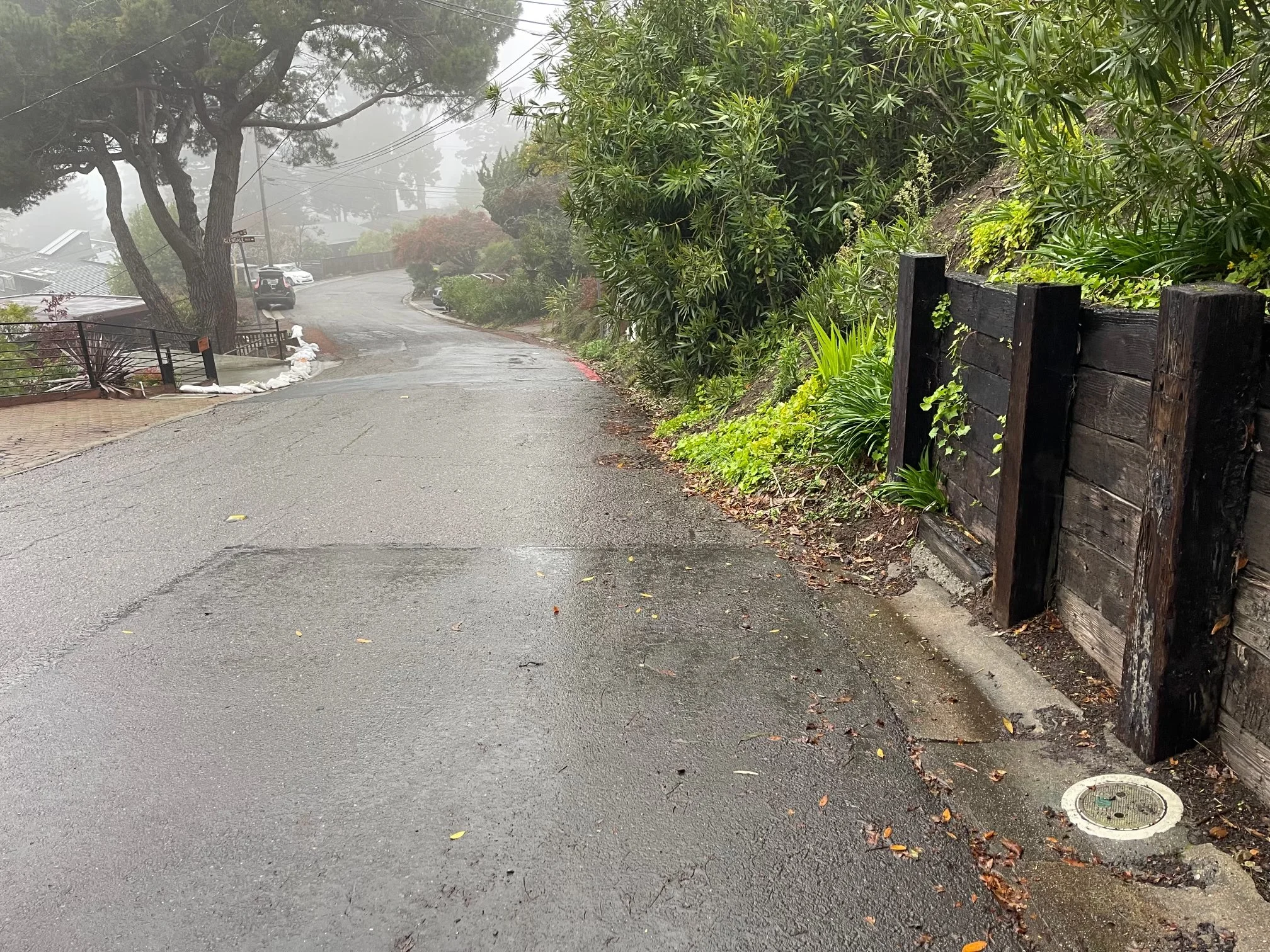 Brindle, whose home is next to Glendale Path, also places sandbags during heavy rains, though they block his driveway and do not fully prevent flooding. Inadequate curbs and hillside soil blocking drainage are diverting water into his area and the path. “Not only do we have to deal with water on our side of the street, we are getting significant flow from the other side,” he said.